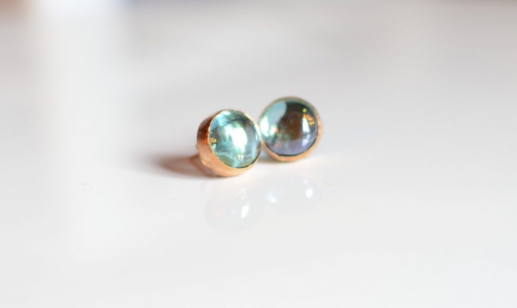 These stunning topaz stones are accented with a slight rainbow tint and are finished in 14/20 gold fill settings.